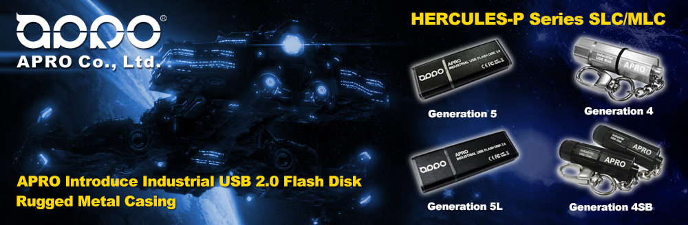 IIn a data-driven world, the USB storage is becoming a popular solution for embedded applications. We believe APRO’s HERCULES-P Series Rugged Metal USB Flash Disk Generation 4/4SB and the Semi-Metal USB Flash Disk Generation 5/5L with new casing designs will meet customers’ expectations and satisfy customers’ requirements at the same time with outstanding quality, performance and competitive price. |