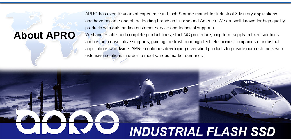 Over a decade of experience in industrial flash market, APRO has grown steadily and become one of the most trustworthy partners that continuously provide reliable solution and superb services. Customer’s satisfaction and their trust in APRO is our motivation to keep moving forward. |