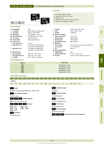 Sequential read microSDHC: 94.6 MB/s (Max.) Wear-leveling Static and Dynamic wear-leveling algorithms