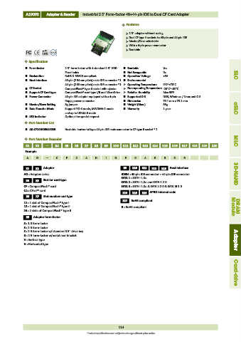 CF Socket CompactFlash® type II socket with ejector Non-operating Temperature -20°C~+80°C