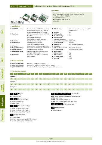 A19091 Adapter & Reader Industrial 2.5” Form-factor SATA I to CF Card Adapter Series