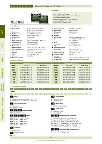 MLC Part Number List SLC IND. grade 5 years or within 60,000 erasing counts
