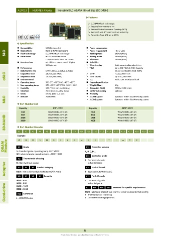 Adapter MSH : Mini SATA Module Half Size (mSATA mini) T : Toshiba SLC-NAND flash IC