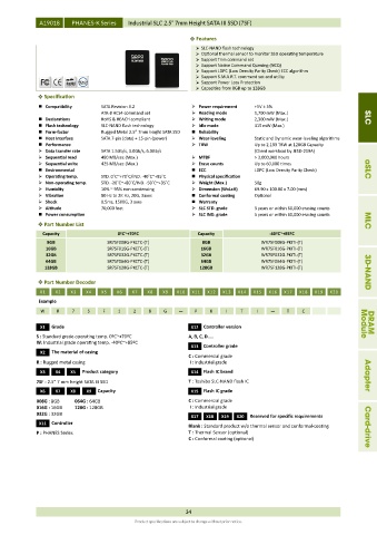 Host Interface SATA 7-pin (data) + 15-pin (power) Wear-leveling Static and Dynamic wear-leveling algorithms