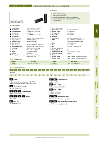 Non-operating temp. STD. -20˚C~+80˚C/IND. -50˚C~+95˚C ECC 72 bits per 1024 bytes block