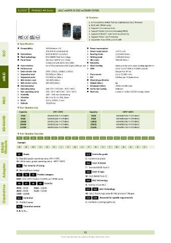 MSR : Mini SATA Module (mSATA) w/ DRAM cache M : MLC-NAND flash IC