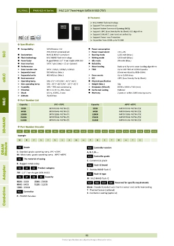 Adapter 7SF : 2.5” 7 mm height SATA III SSD T : Toshiba NAND flash IC