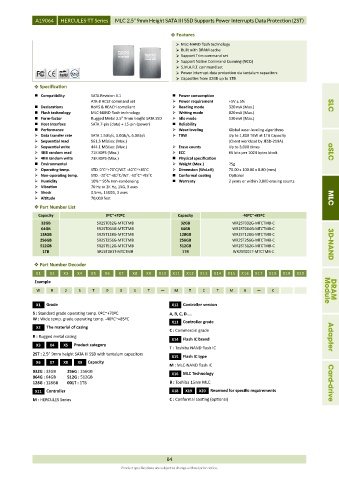4KB random read 71K IOPS (Max.) ECC 66 bits per 1024 bytes block aSLC