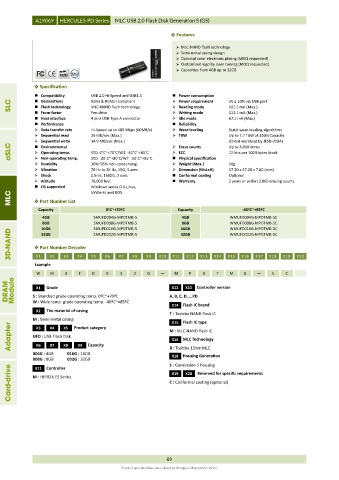 aSLC Environmental STD. 0˚C~+70˚C/W.T. -40˚C~+85˚C Erase counts Up to 3,000 times