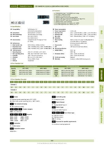 Sequential read 2242 : 550 MB/s (Max.); 2280 : 550 MB/s(Max.) ECC LDPC (Low Density Parity Check) aSLC