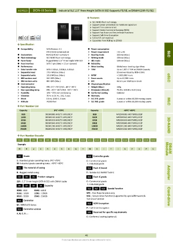4KB random write 40K IOPS (Max.) ECC 66 bits per 1024 bytes block