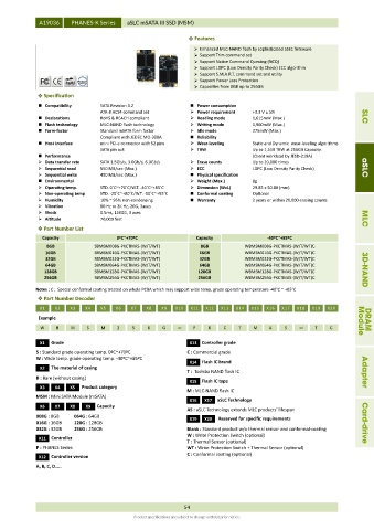 Host Interface mini PCI-e connector with 52 pins Wear-leveling Static and Dynamic wear-leveling algorithms