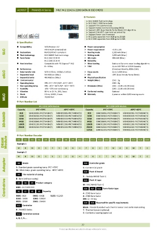 SLC Declarations ATA-8 ACS4 command set Power requirement +3.3V ± 5%